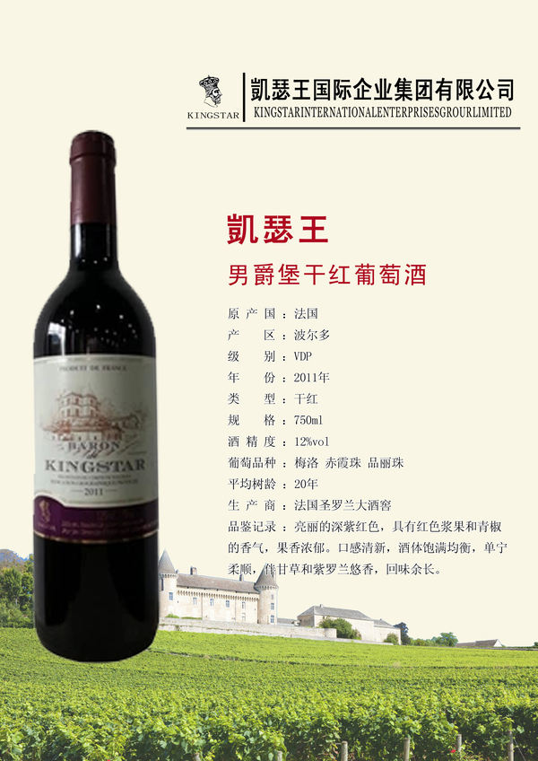 2011年份凯瑟王男爵堡干红葡萄酒